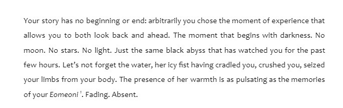 The story that has no beginning or end - just an experience that allows you to both look back and ahead.